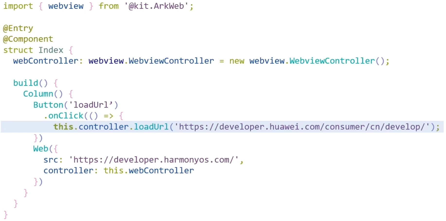 开发者可以在Web组件创建时,指定默认加载的网络页面。在默认页面加载完成后,如果开发者需要变更此Web组件显示的网络页面,可以通过调用loadUrl()接口加载指定的网页。