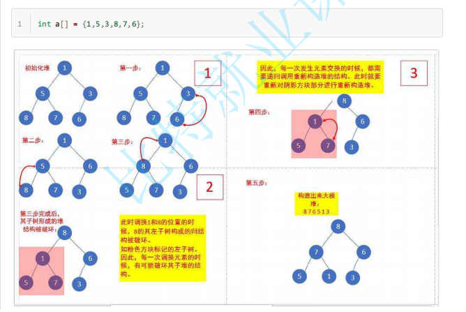 上面的代码块中,我们给出了一个数组。如果我们要对其建堆,我们应该怎么做呢?