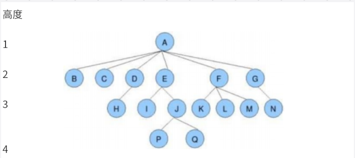 树的高度或深度: 树中结点的最大层次; 如上图:树的高度为4
