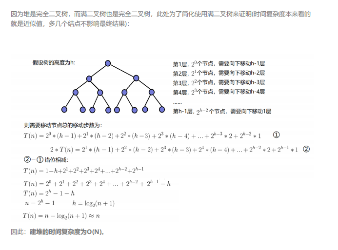向下调整建堆时间复杂度推导如下: