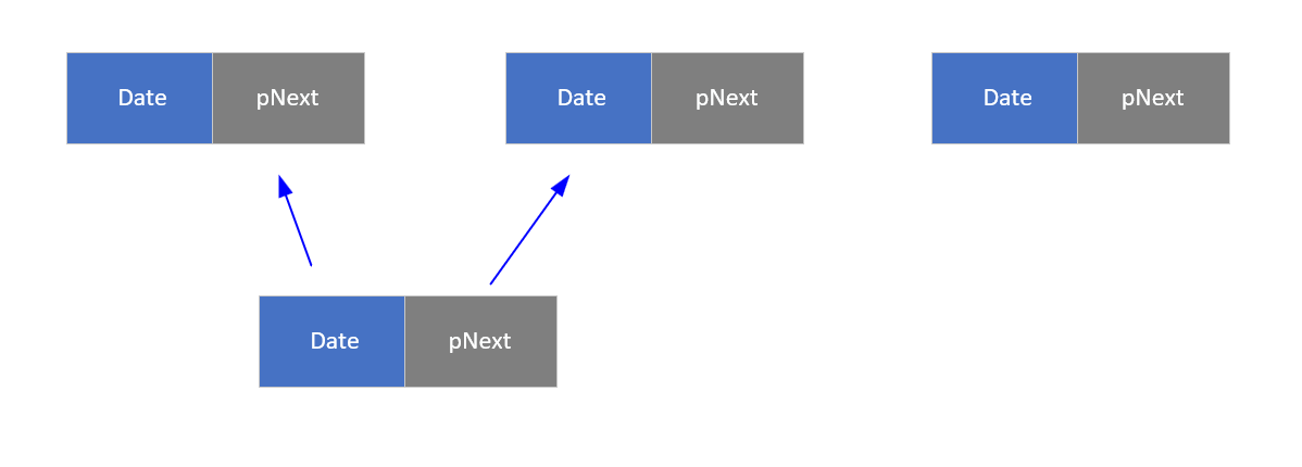 3.将pNext赋值空白节点的pNext。(若的插入第一个数据,则是NULL)