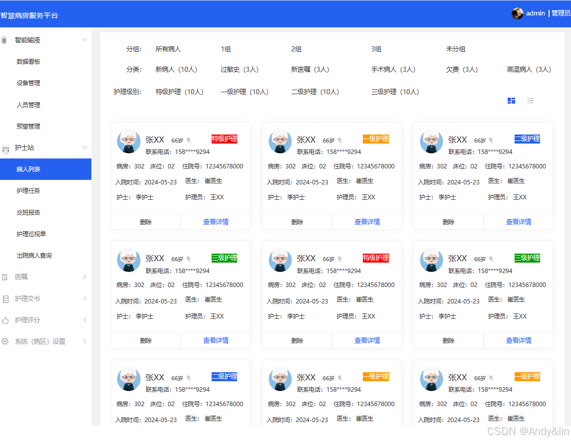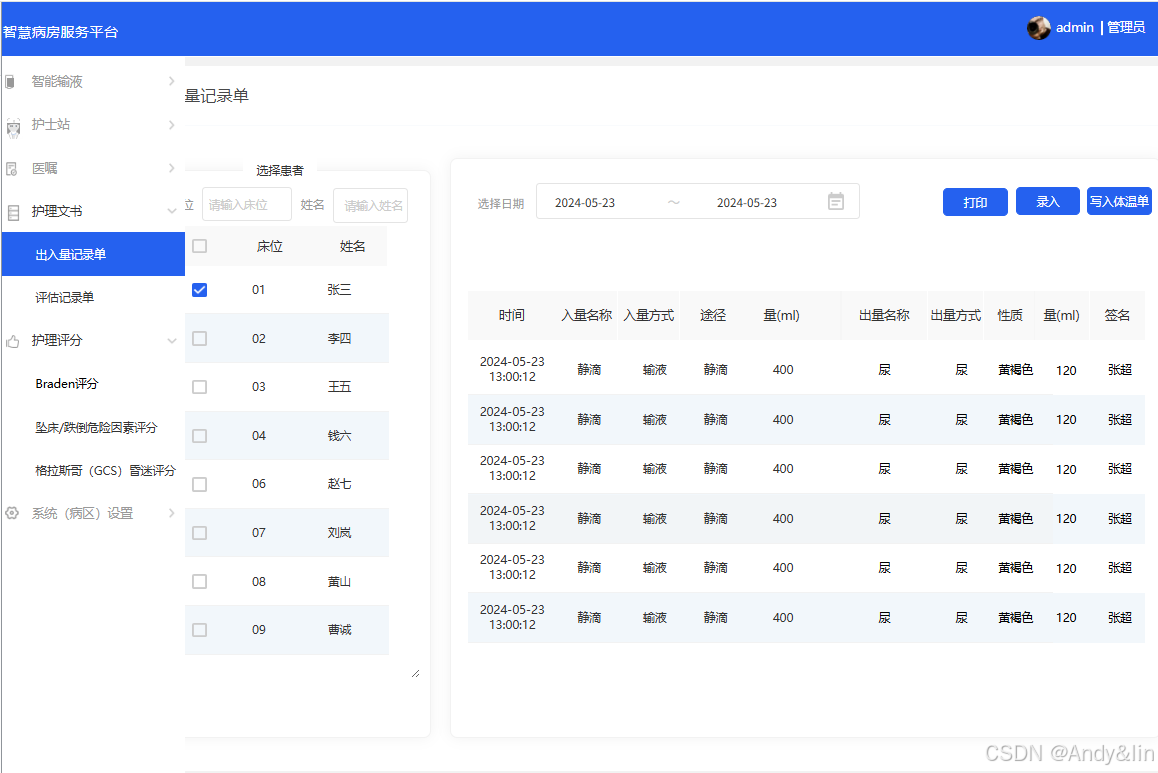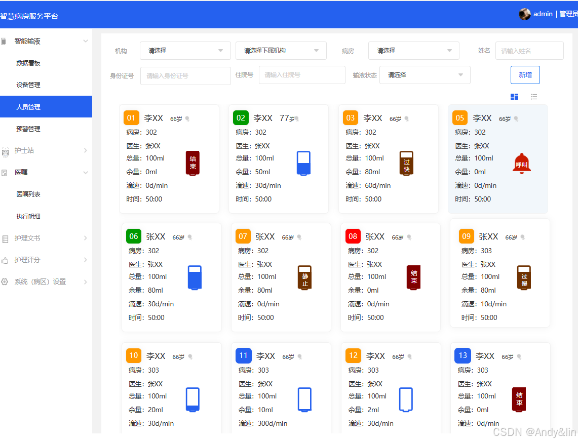 智慧病房APP集智能输液、护士站、医嘱、护理文书、护理评分及系统设置于一体的系统,其主要功能如下:
