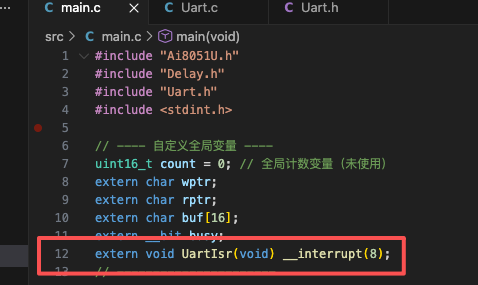 extern void UartIsr(void) __interrupt(8);