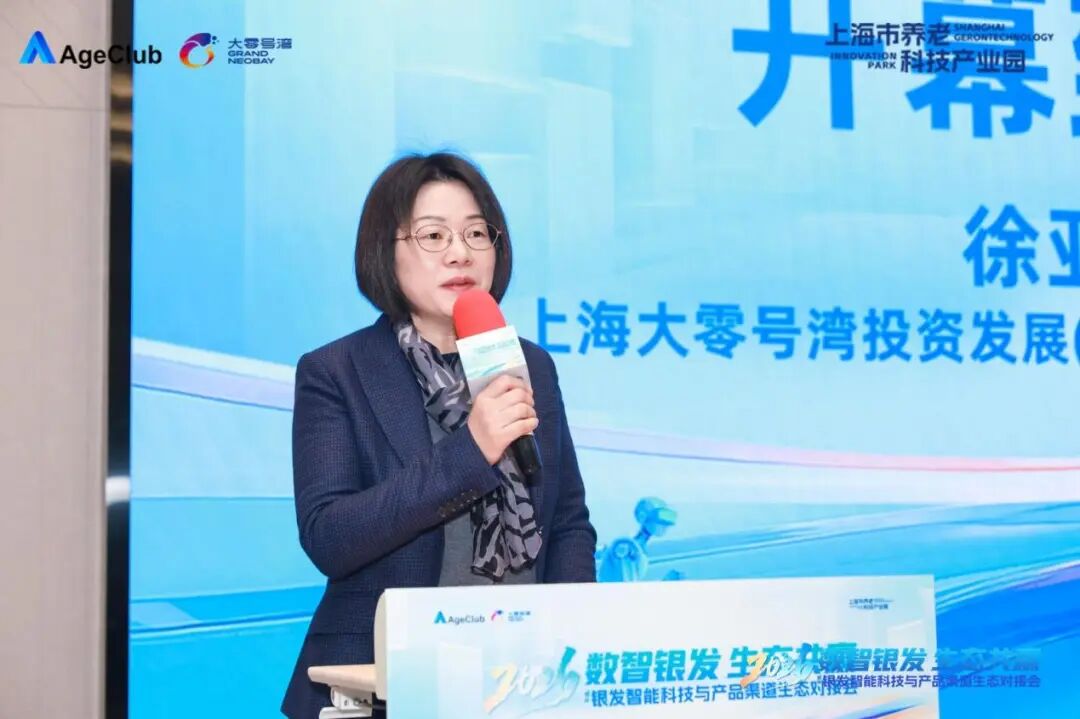 上海大零号湾投资发展(集团)有限公司党委副书记、总经理徐亚云进行开幕致辞,系统介绍了上海市及大零号湾园区在养老科技领域的政策支持、产业布局与资源配套,强调以"创新策源地"姿态推动银发科技从研发到落地的全链条发展,为与会企业提供"土壤"与"舞台"。