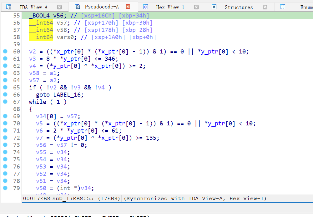 效果: 静态分析看不懂时,用动态调试验证;动态调试找不到时,用静态分析定位。