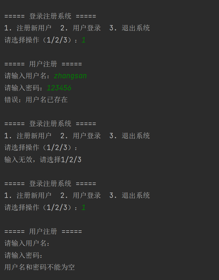 print("\n===== 登录注册系统 =====")