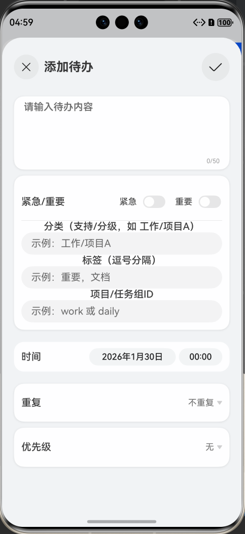 在"添加待办"的 Sheet 弹窗中,我们没有让所有内容同时出现,而是利用 delay 属性构建了视觉层级。
