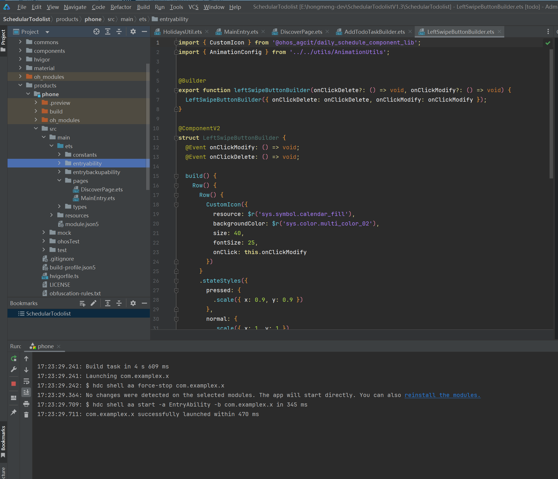 TransitionEffect组合,实现了带延迟的瀑布流效果。每个列表项依次滑入并伴随轻微的弹性缩放,赋予列表加载时的节奏感。 - 离场(Exit):不同于入场,删除操作需要即时反馈。我们配置了无延迟的快速淡出效果,确保用户点击删除后,列表项能干脆利落地消失,不拖泥带水。