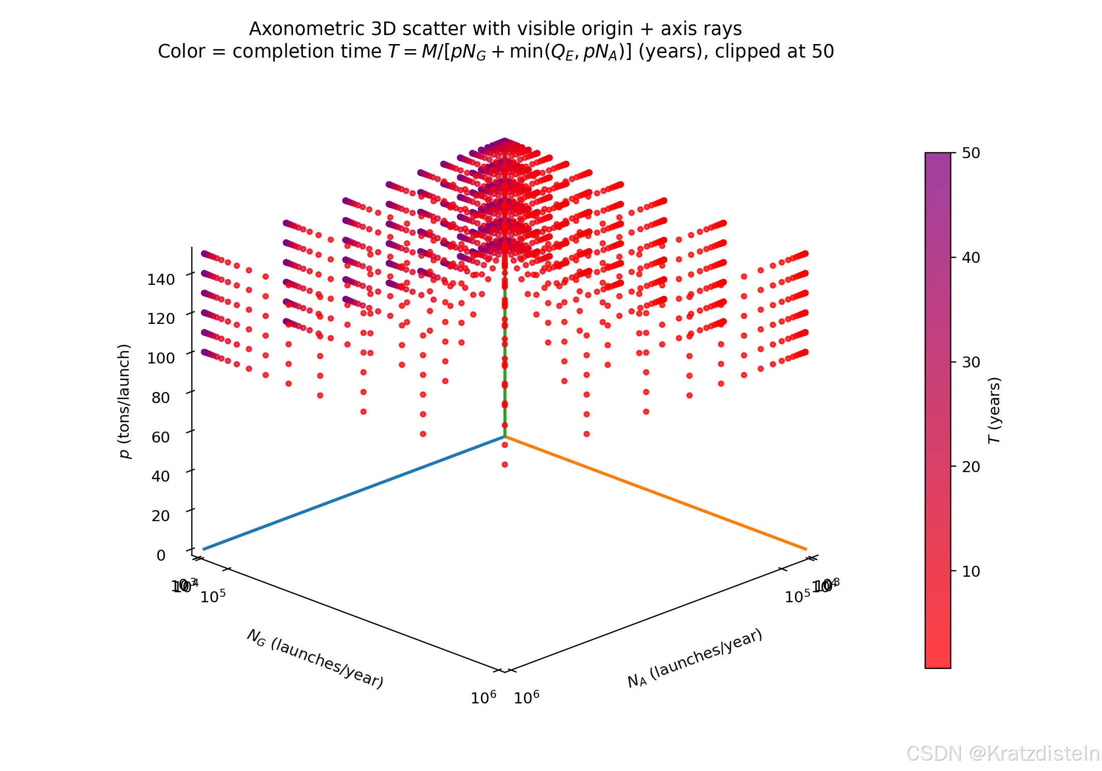 ax.set_zlabel(r'$p$ (tons/launch)')