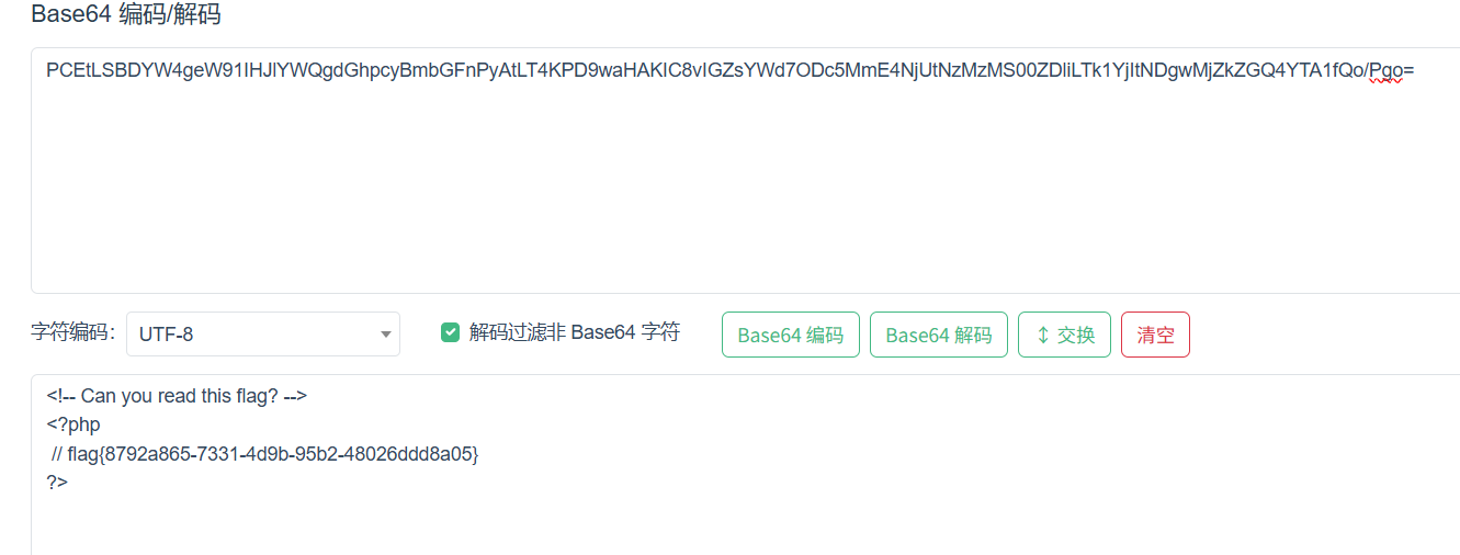 base64解码得到flag,如下: