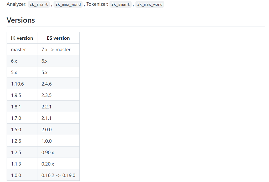 IK分词器的版本号与Elasticsearch版本号严格绑定,例如:
