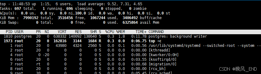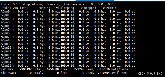Mem: 7.6G 217M 6.6G 309M 798M 6.9G