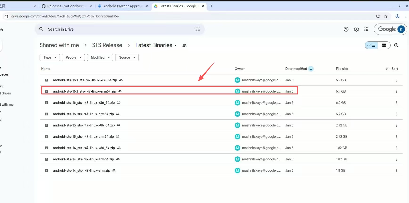 如下图所示,选择arm64.zip文件: