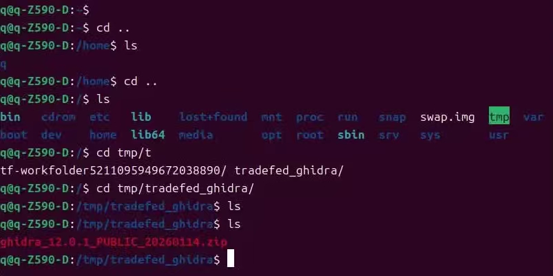 注意:ghidra_12.0.1_PUBLIC_20260114.zip 是文件夹名称,linux是可以让文件夹报错符号.的;