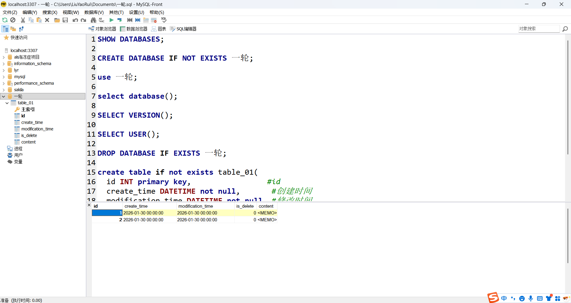 CREATE DATABASE IF NOT EXISTS 一轮;