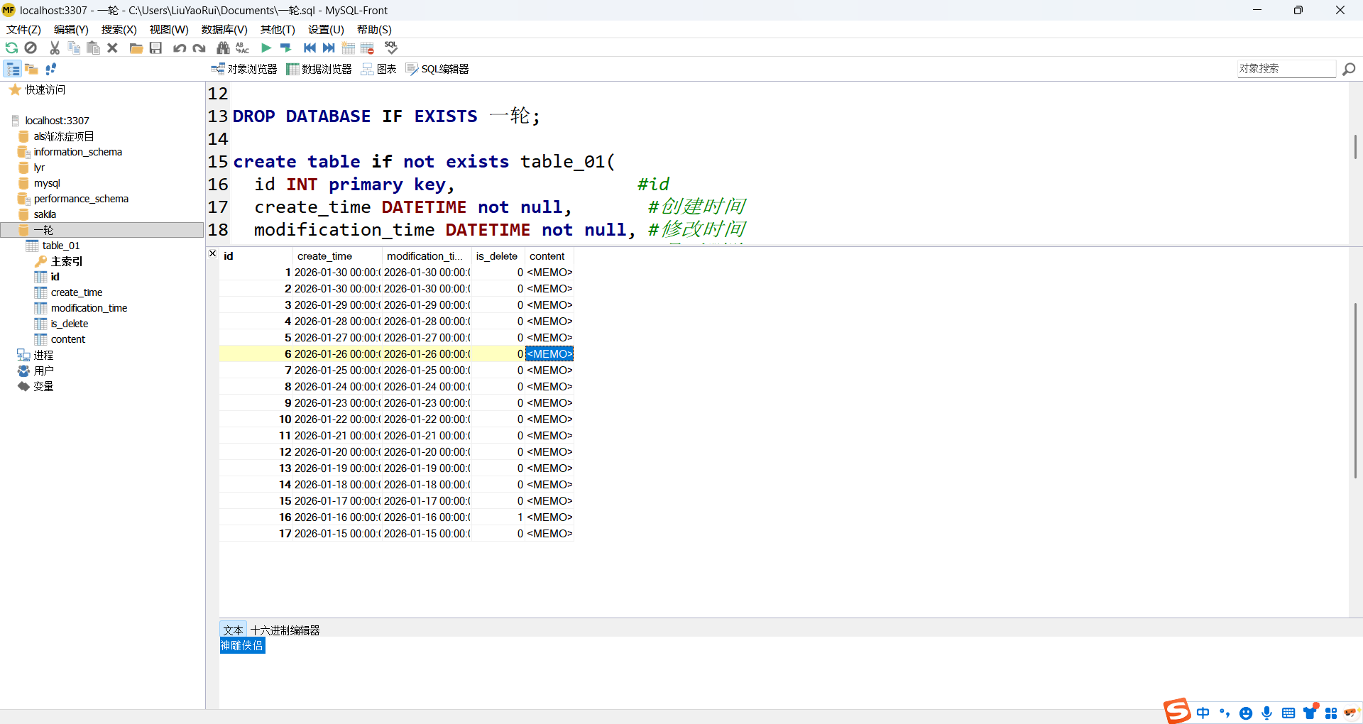 modification_time DATETIME not null, #修改时间