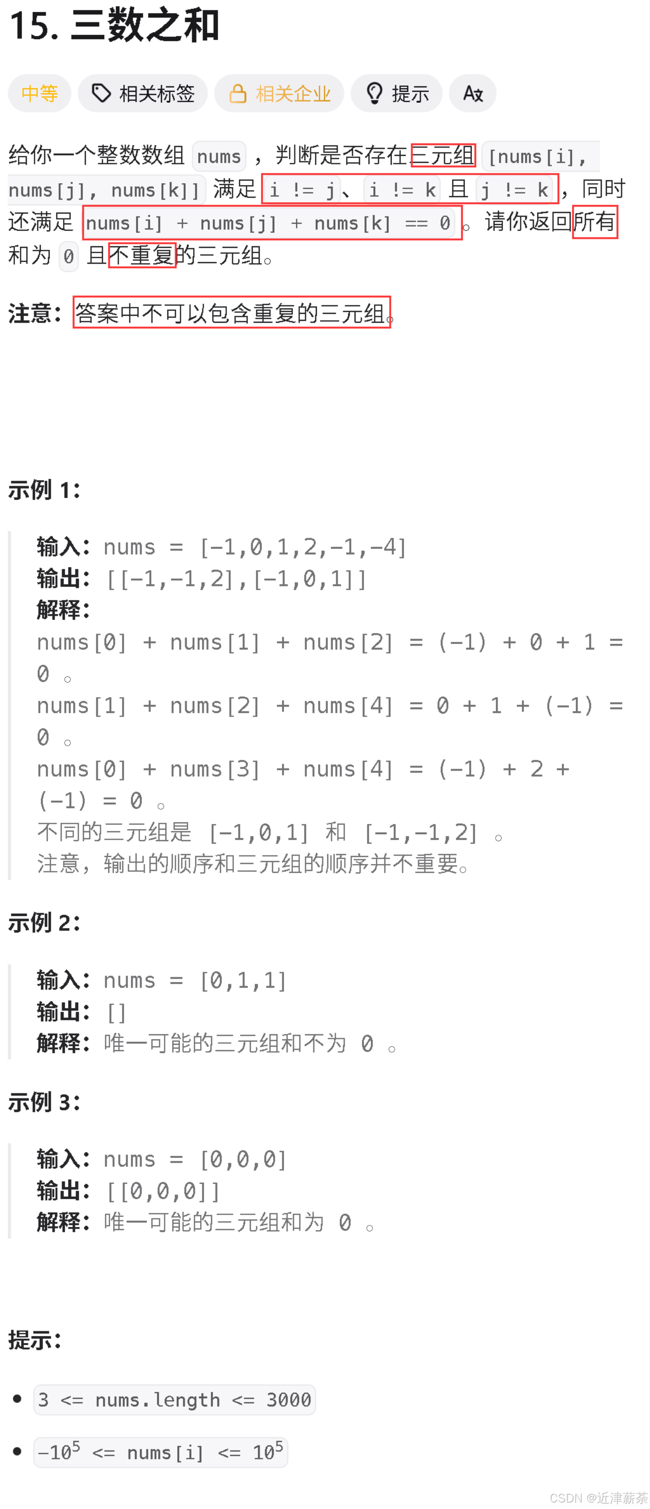 3.2.2找三元组:采用for+双指针(把时间复杂度干到O(N^2))