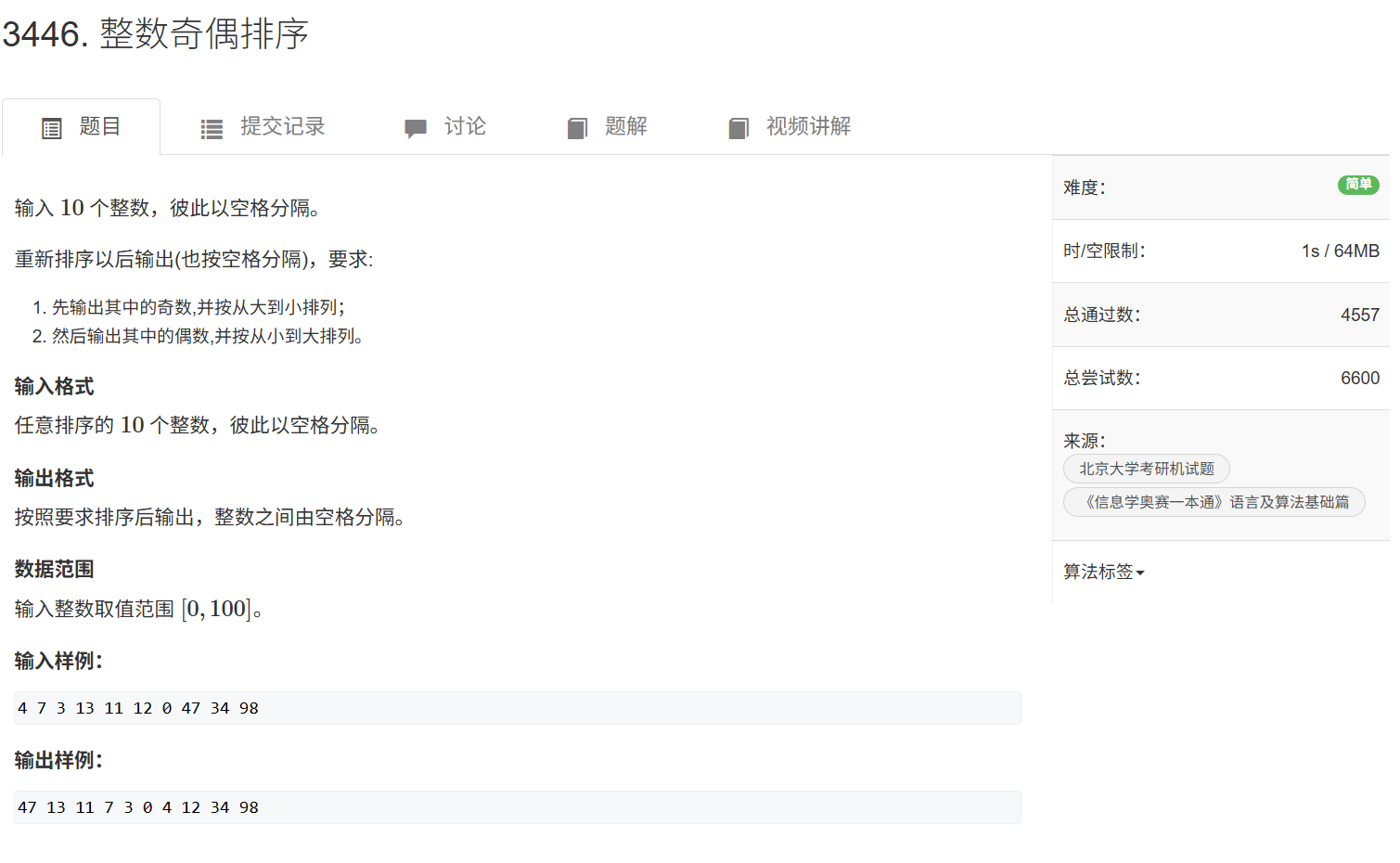 3446.整数奇偶排序