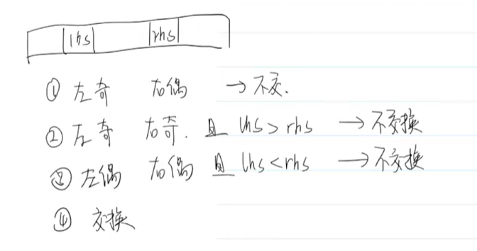 if (lhs % 2 == 1 && rhs % 2 == 0) { // 左奇右偶,不交换