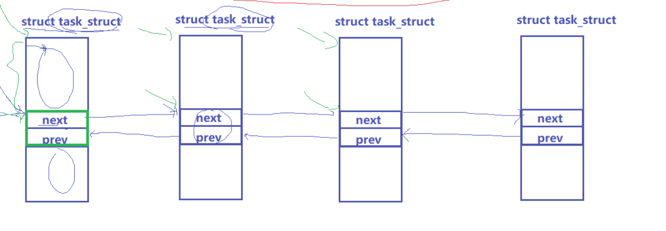 next prev是直接指向下个节点中的next prev,那么一个struct task_struct可以存在多种不同数据类型的侵入式列表