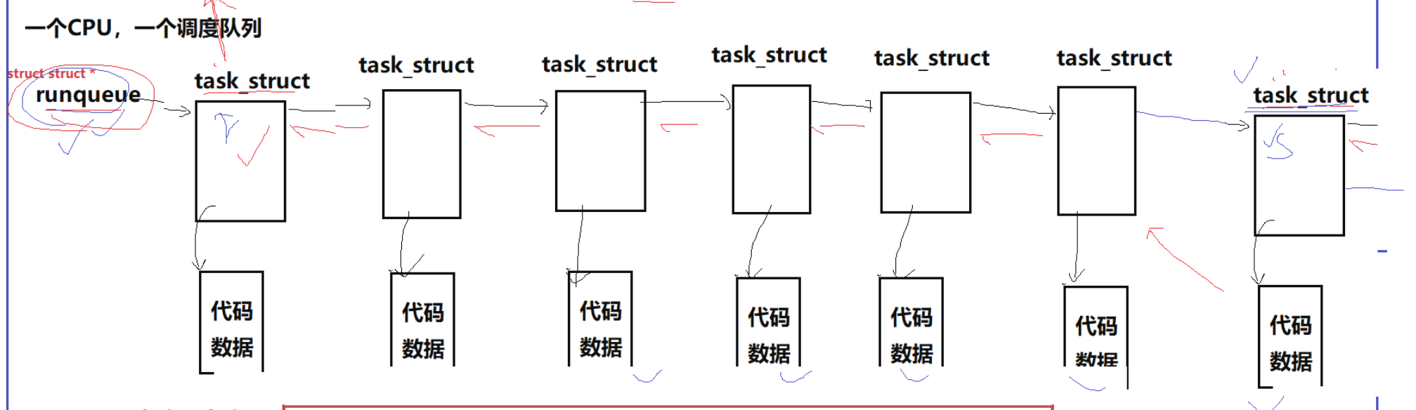 我们要先知道task_struct可以在多个不同的数据结构(eg:调度队列,进程列表),原因就在于Linux下使用该结构与我们平常使用不一样