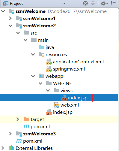 在 src/main/webapp/WEB-INF/views/ 下使新建 index.jsp页面