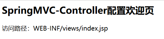 html<%@ page contentType="text/html;charset=UTF-8" language="java" %> <html> <head> <title>Title</title> </head> <body> <h2>SpringMVC-Controller配置欢迎页</h2> <p>访问路径:WEB-INF/views/index.jsp</p> </body> </html> -