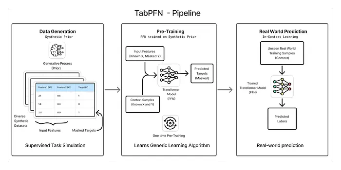 TabPFN 代表 Tabular Prior-data Fitted Network(表格先验数据拟合网络) ,这是一个基于将模型拟合到 表格数据集的先验而不是单个数据集的思想的基础模型,因此得名。