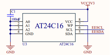 外挂 EEPROM,板载16K 容量 AT24C16 EEPROM 芯片,可长期存储设备描述信息与 芯片初始配置,避免设备每次上电后重复配置,提升系统启动效率与稳定性。