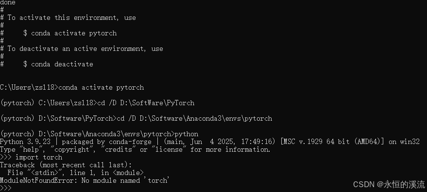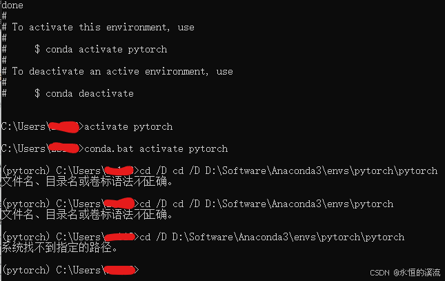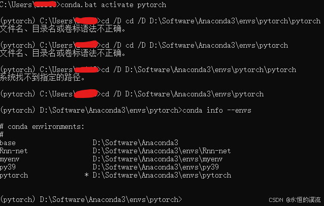 (3)cd /D D:\Software\Anaconda3\envs\pytorch(此处为博客2025.06月的《无法运用pytorch环境、改环境路径、隔离环境》中的Pytorch所在路径),