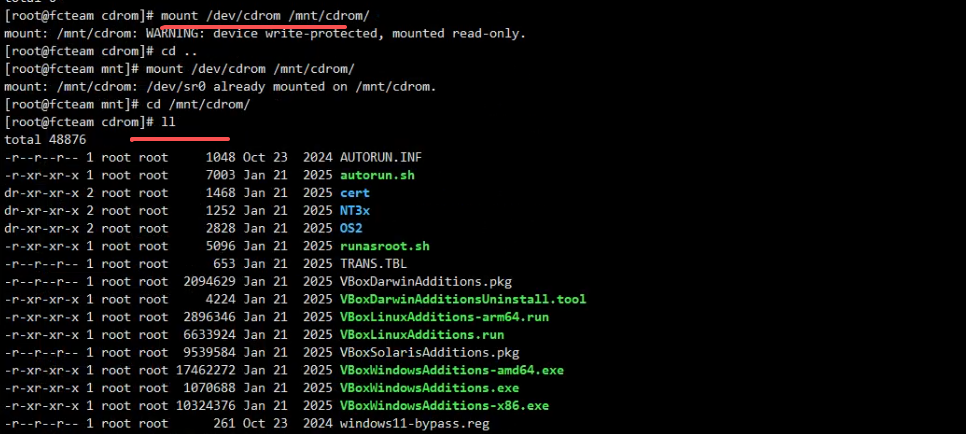 下载匹配的 VBoxGuestAdditions 镜像,并挂载到虚拟机