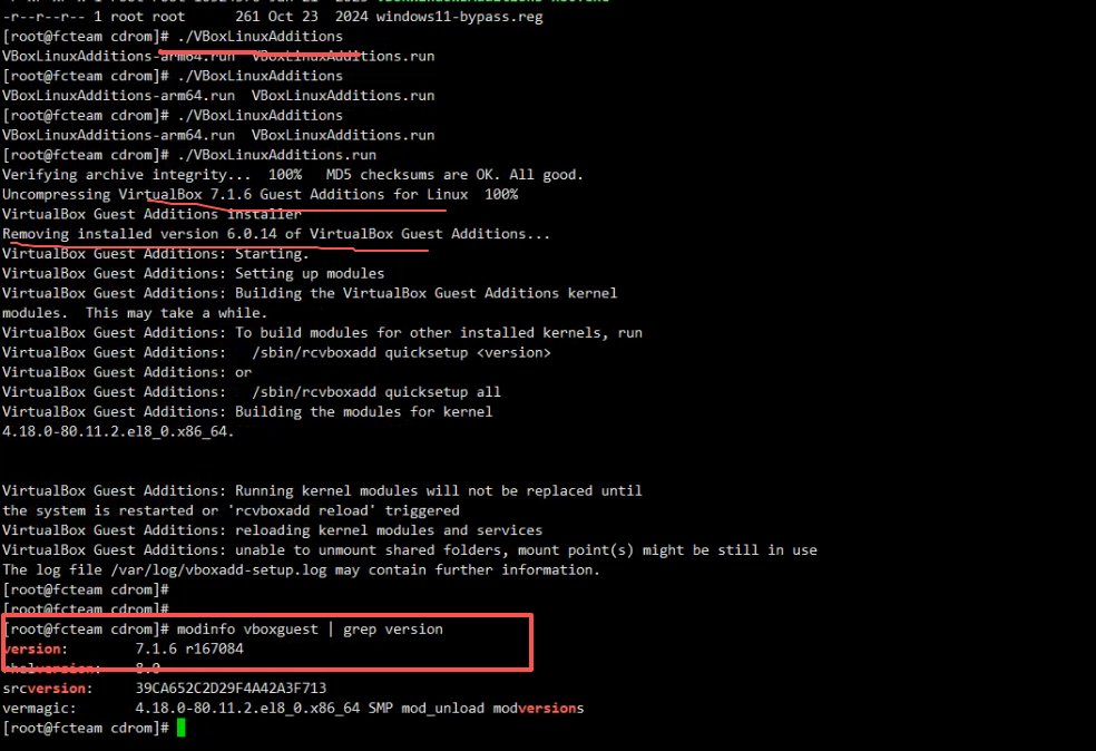 1. 问题: VBoxGuestAdditions 版本和 VirtualBox 版本不匹配**