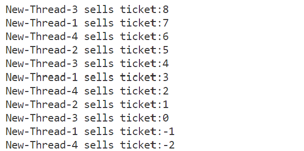 我们发现这个票数最终出现了负数,这是因为有多个线程对票数进行更新导致了数据不一致问题。当内存中tickets中为1时,线程1想要对tickets进行修改,此时tickets大于0,正要进行修改时,该线程1由于usleep被切换成其它的线程,线程2进来后,由于线程1还没对tickets进行修改,依旧为1,所以线程2可以对tickets进行修改,线程2也会usleep,依次类推,多个线程都会进入到if代码块中,当线程醒来后,都会对tickets变量进行修改,导致出现负数。在上面的代码中,主要是因为if中的判断出现了问题,判断条件导致了多个线程同时访问if代码块。