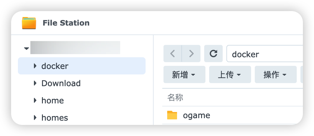 按照惯例,在"File Station"的"docker"文件夹下创建一个"ogame"文件夹。