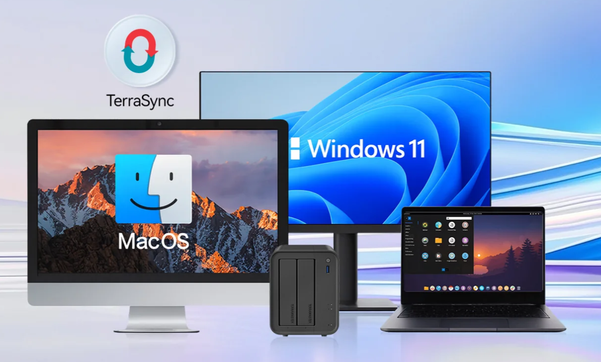 其次,异地创作受限,外出拍摄、异地办公时,无法快速调取本地素材,只能携带笨重的移动硬盘,不便且有丢失风险;开启TOS 6.0系统的TerraSync多端同步功能,搭配TNAS Mobile APP,手机拍摄素材实时自动备份至NAS,电脑剪辑工程文件实时同步,平板修图完成后直接保存至NAS对应文件夹,实现苹果、安卓、Windows、macOS全平台无缝同步,无需来回传文件、插移动硬盘。