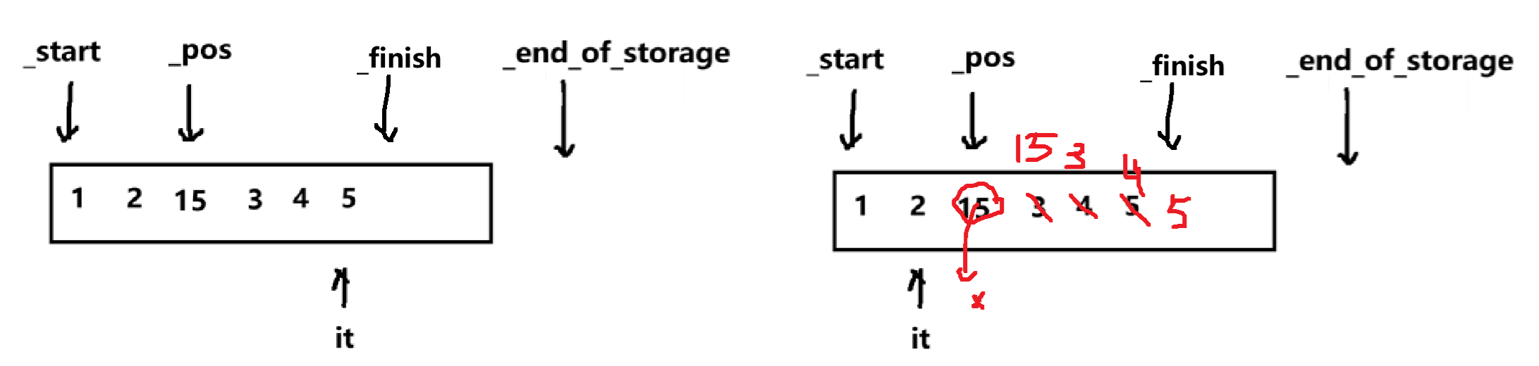 如果pos<=it,就需要把*(it+1)=*(it)
