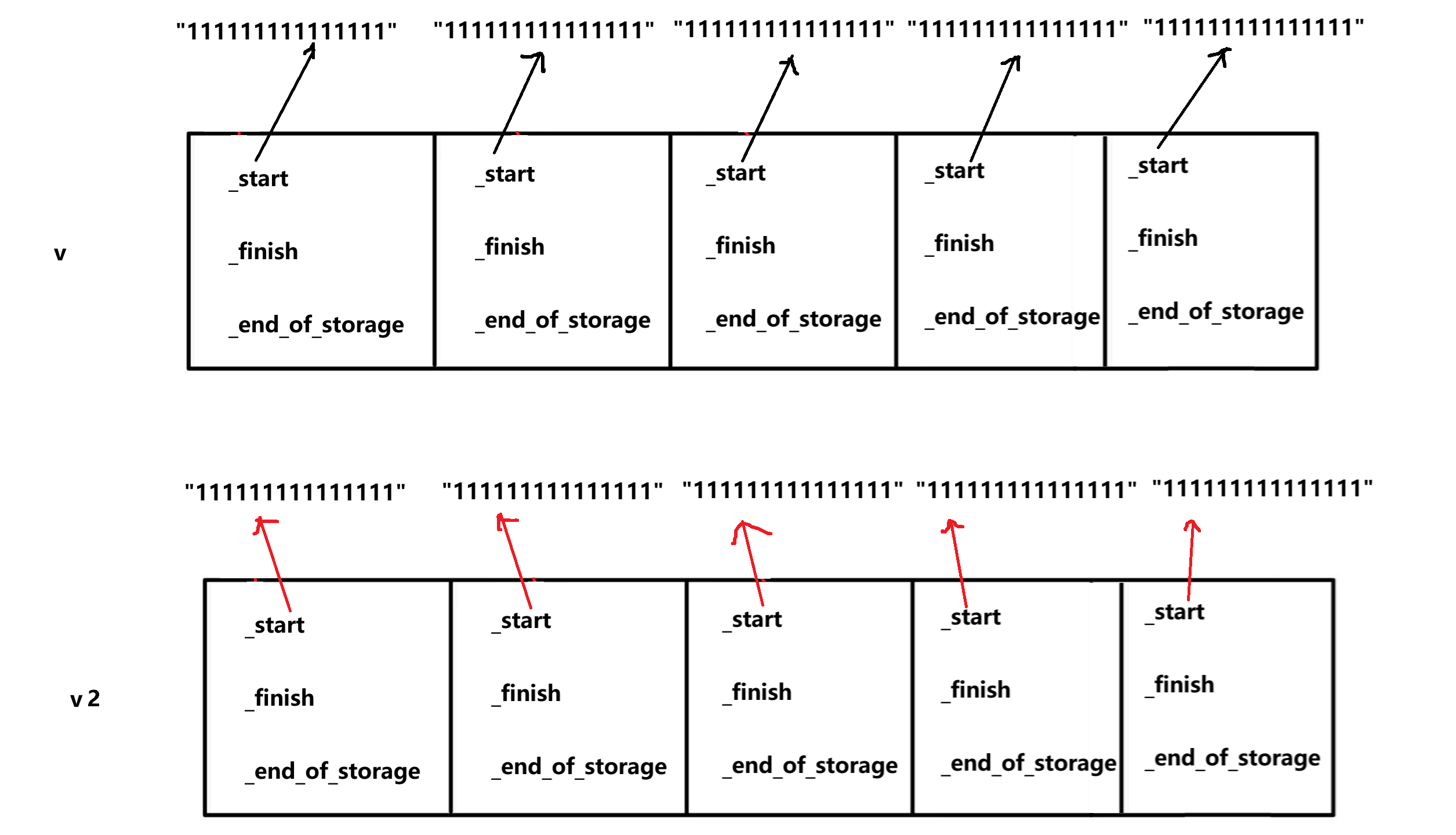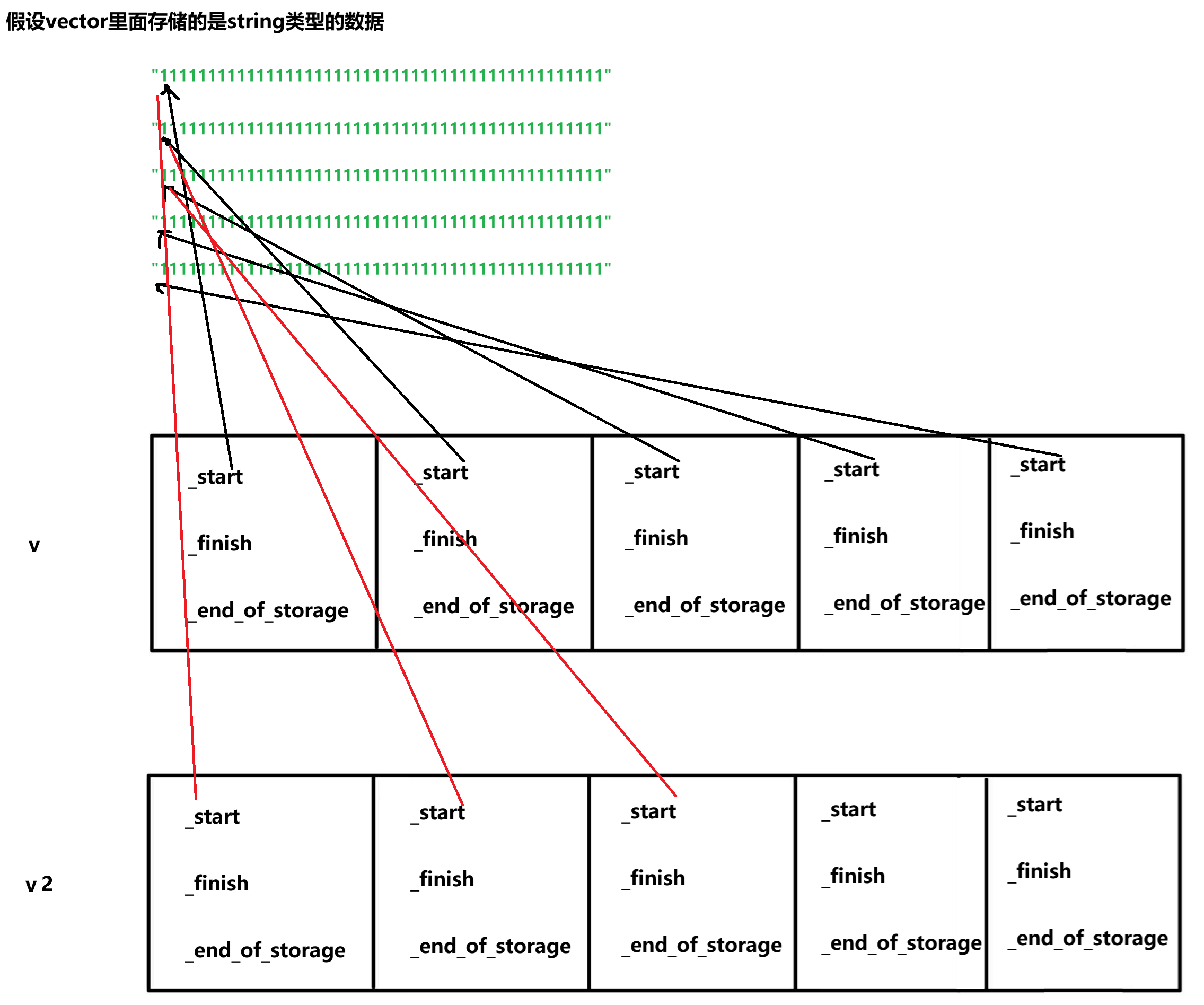 问题1:当拷贝完内容,释放_start时,如果直接写_finish=_start+size()会报错,原因如下: