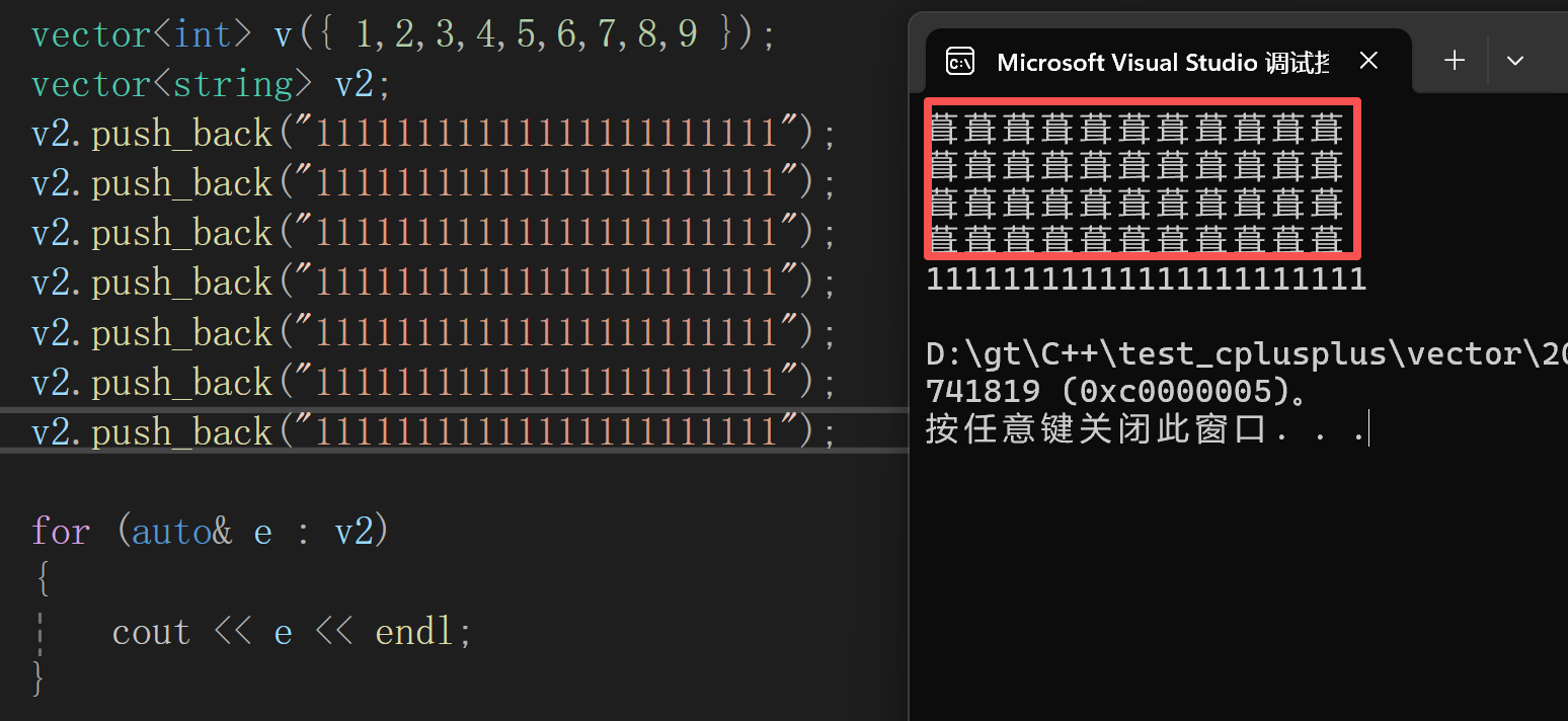 当我正常执行5次push_back后,程序 是正常的,但是当我注释掉一行push_back的时候,此时的结果并不是我想要的,这是为什么?