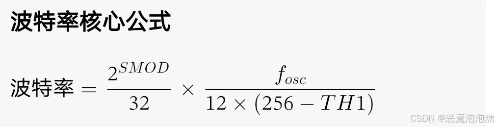 方式1的波特率 = 2的SMOD次方 / 32 * T1溢出率,其中T1是定时器的八位重载的一个模式。