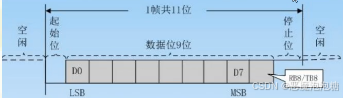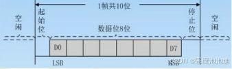 传送一帧数据格式:起始位,八位数据,停止位,一共是10位。