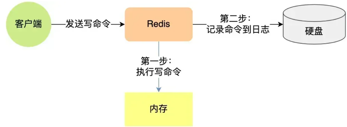 Redis 在执行完一条写操作命令后,就会把该命令以追加的方式写入到一个文件里,然后 Redis 重启时,会读取该文件记录的命令,然后逐一执行命令的方式来进行数据恢复。