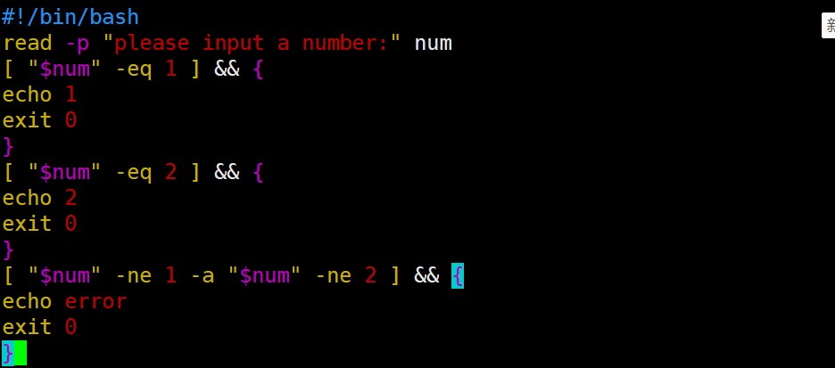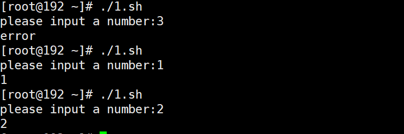 实验 1 :通过 read 传入一个数字,如果传入的数字等于 1 ,就打印 1 ;如果等于 2 ,就打印 2 ,如果不等于 1 也不等于 2 ,