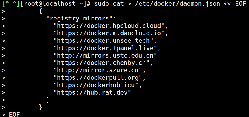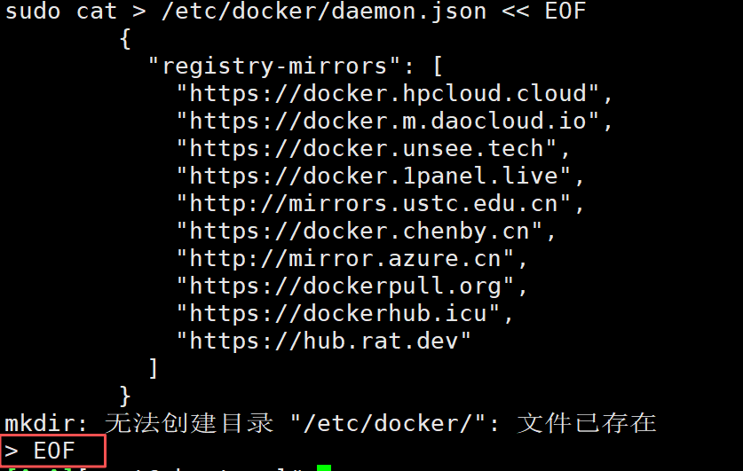 镜像加速,输入完不要立刻回车!!!!!!,回车换一行,添加代码