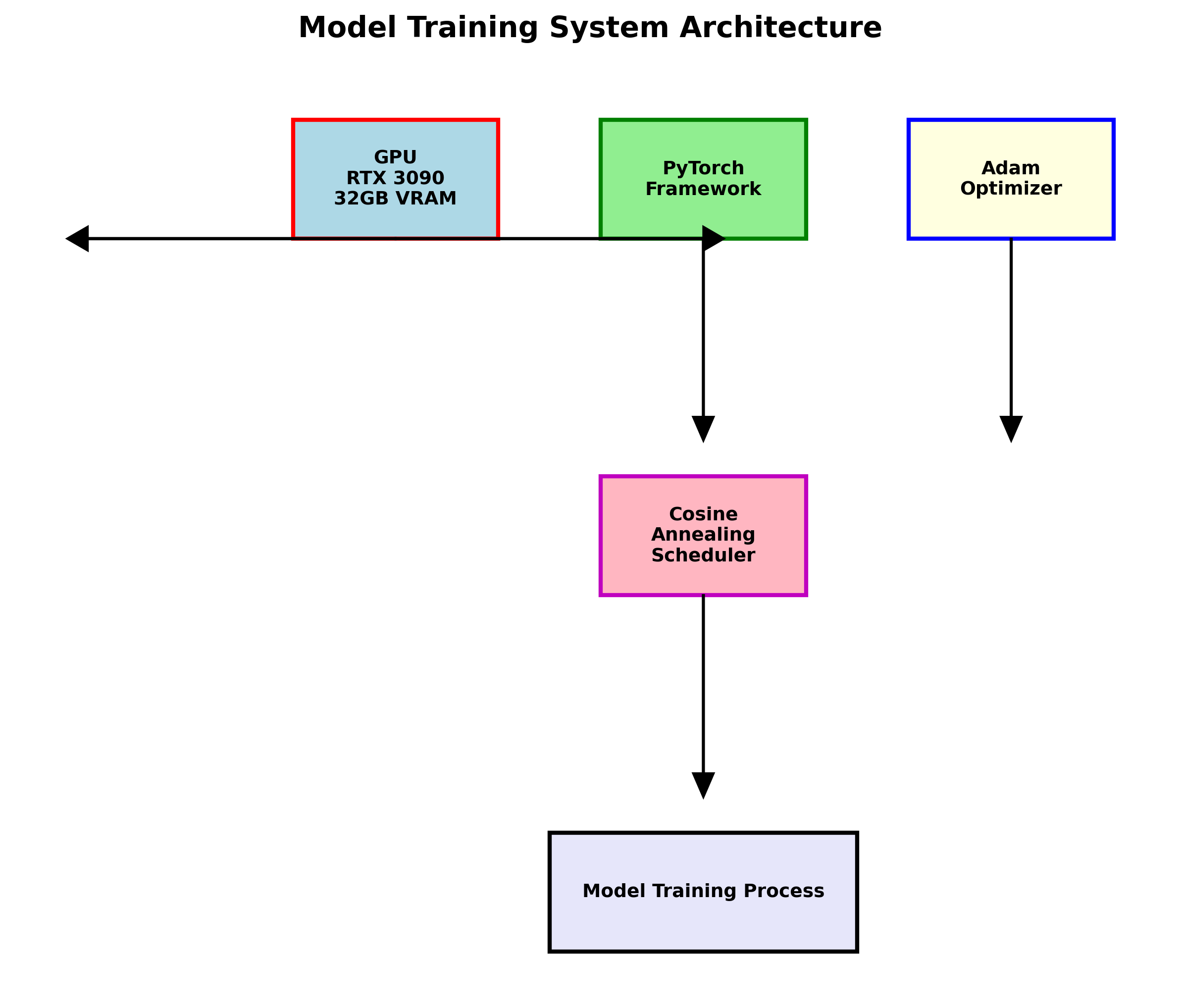 模型训练在GPU环境下进行,主要配置包括NVIDIA RTX 3090显卡、32GB显存和PyTorch深度学习框架。训练过程中采用了Adam优化器,初始学习率为0.0001,并采用余弦退火学习率调度策略。