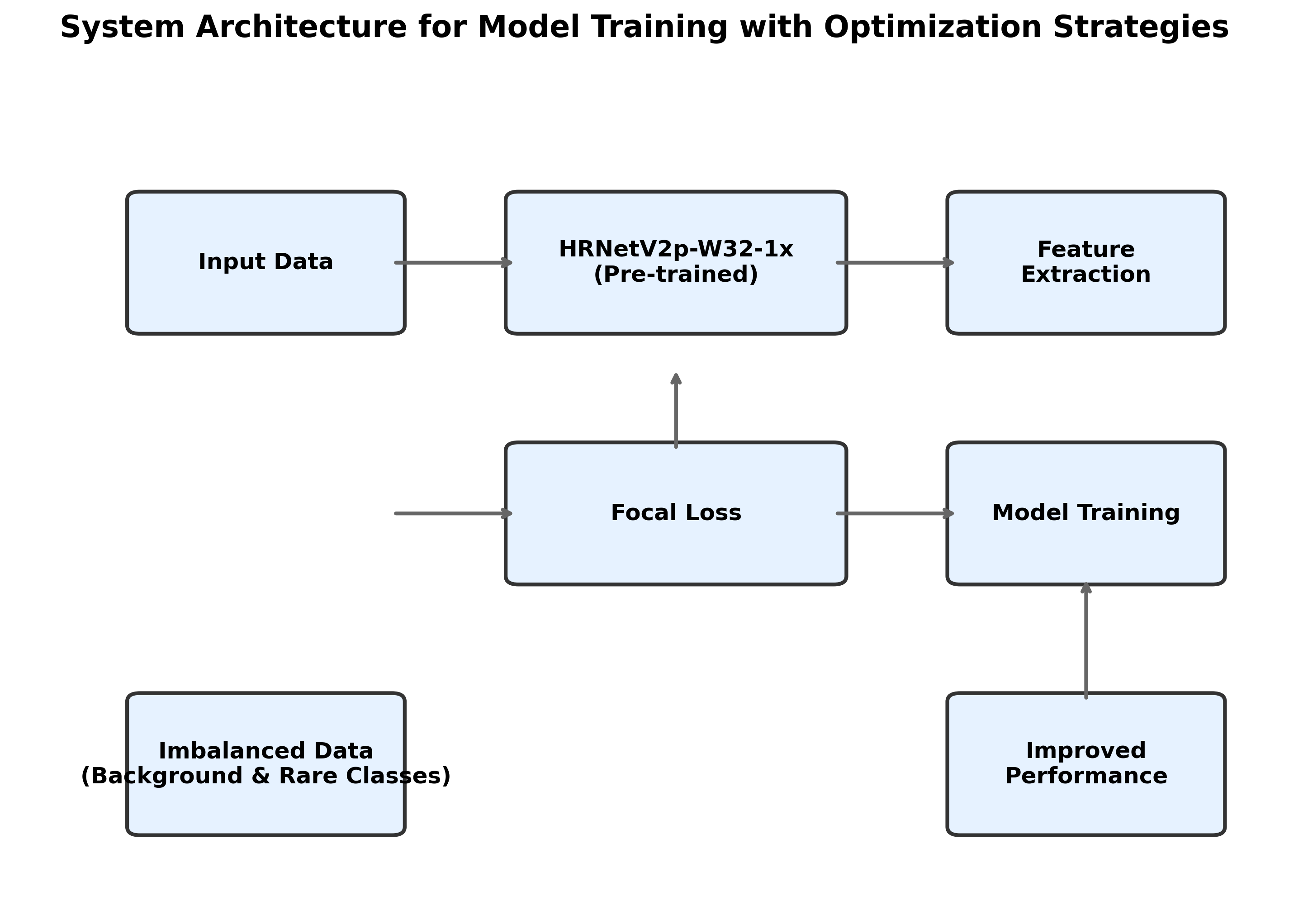 在模型训练过程中,我们采用了多种优化策略来提高模型性能。首先,我们使用了预训练的HRNetV2p-W32-1x模型作为特征提取器,这可以大大加快模型收敛速度并提高初始性能。其次,我们实现了焦点损失(Focal Loss)来解决类别不平衡问题,特别是在背景类和某些罕见病害类别之间。