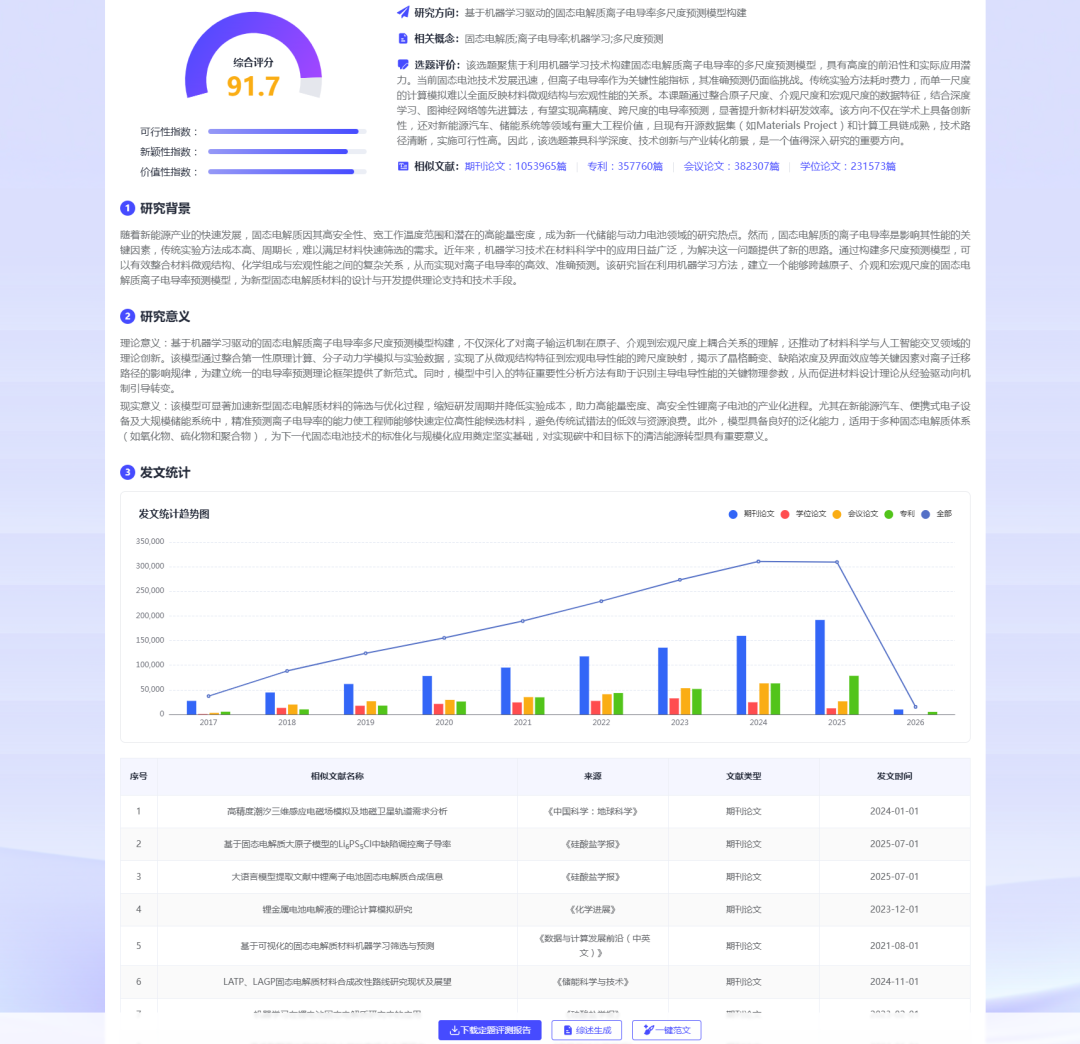 输入研究领域或关键词,系统会在数秒内: