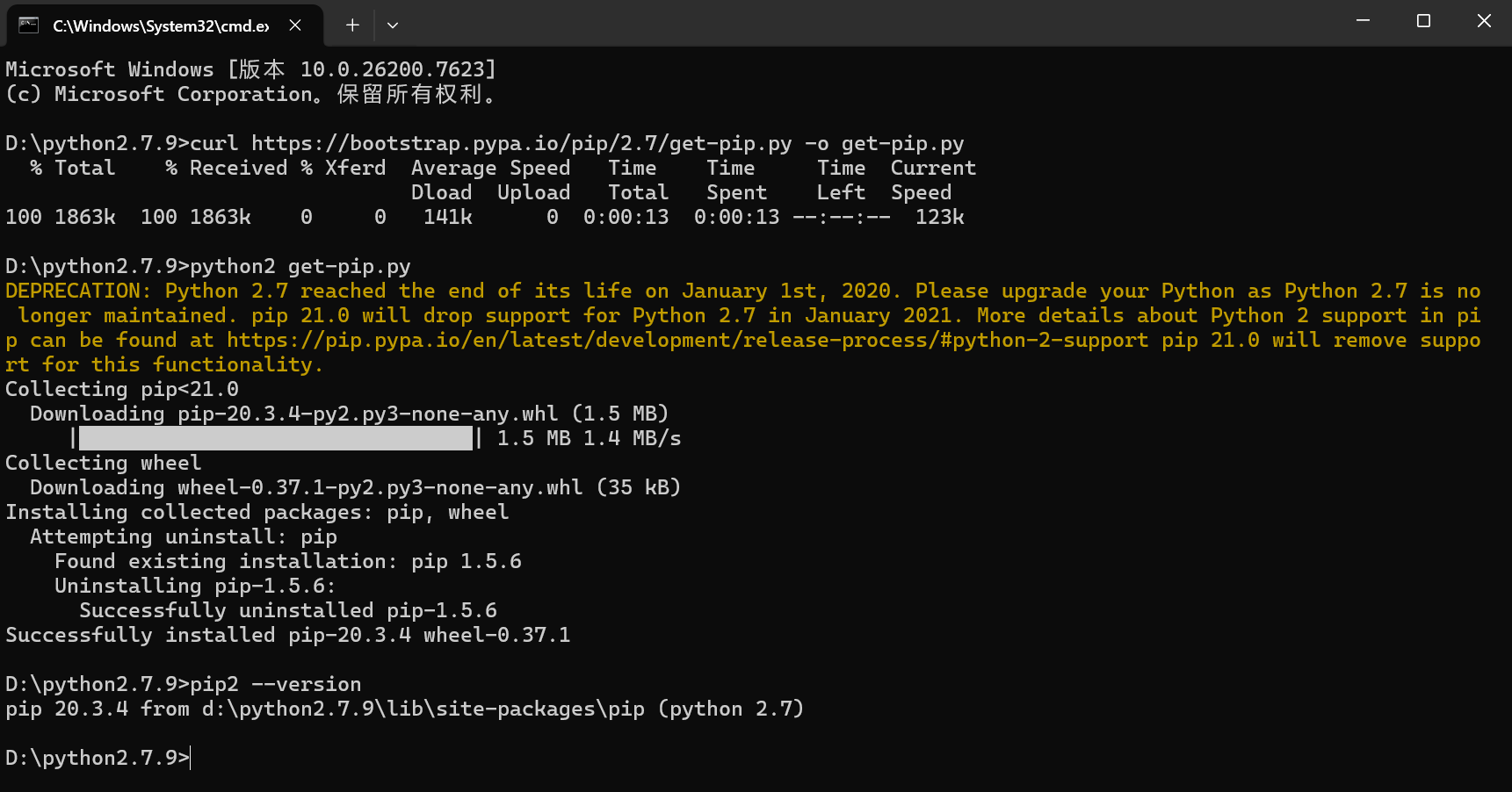 curl https://bootstrap.pypa.io/pip/2.7/get-pip.py -o get-pip.py