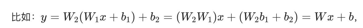 无论叠多少层,最终还是单层线性变换,无法拟合语言的非线性规律(比如「我吃饭」和「饭吃我」的语义差异,是典型的非线性关联)
