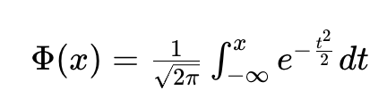 Φ(x) 是标准正态分布的累积分布函数(简单理解:一个 0-1 之间的平滑系数,随 x 增大从 0 逐渐趋近于 1)