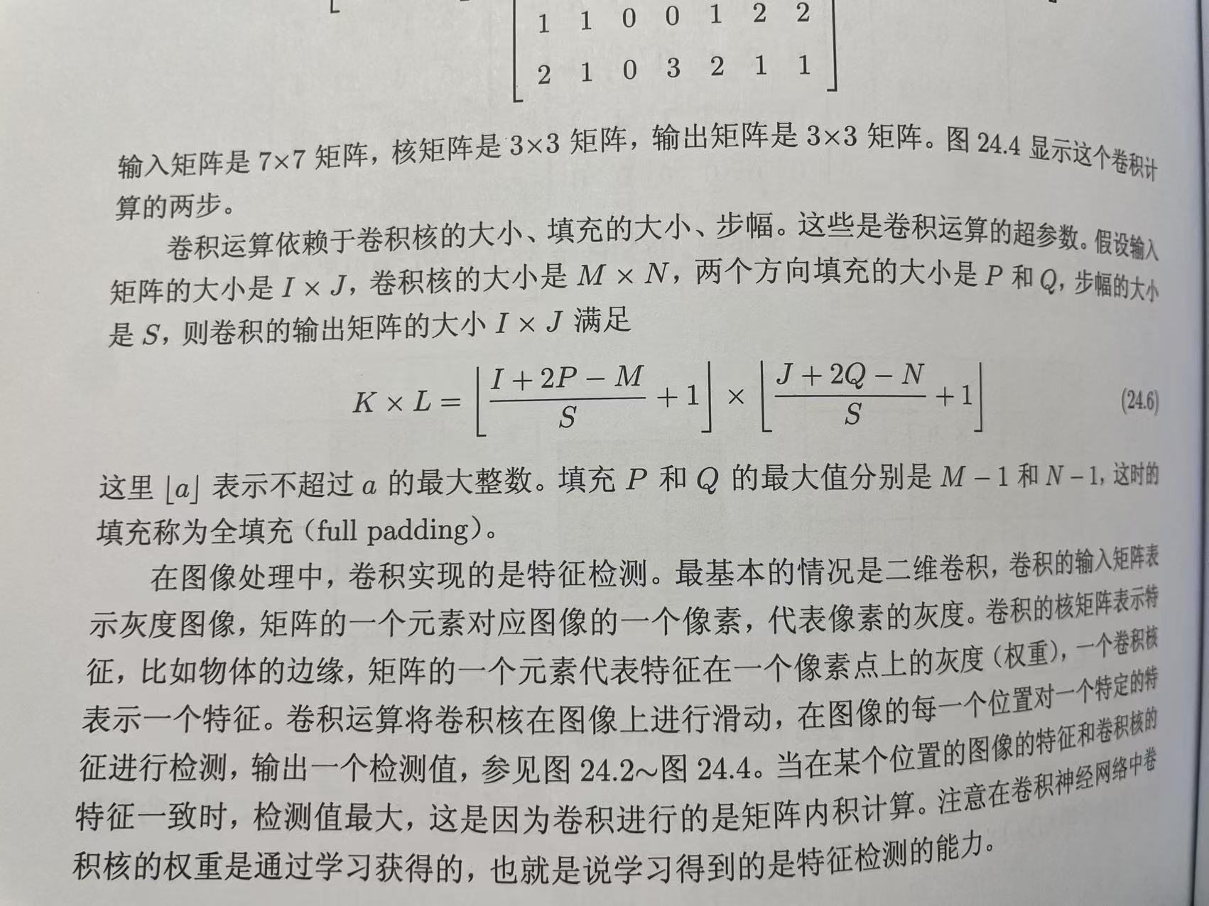 卷积运算依赖于卷积核的尺寸、填充的大小、步长。这些是卷积运算的超参数。假设输入矩阵的大小是H×WH \times WH×W,卷积核的大小是A×BA \times BA×B,两个方向填充的大小是PPP和QQQ,步长的大小是SSS,则卷积的输出矩阵的大小Hˊ×Wˊ{\acute H} \times {\acute W}Hˊ×Wˊ满足